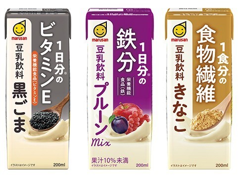 1日分のビタミンE 豆乳飲料黒ごま200ml、1日分の鉄分豆乳飲料プルーンmix200ml、1食分の食物繊維豆乳飲料きなこ200ml 各3本(合計9本)セット