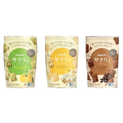 食と健康をつなぐ製品の開発販売を手がけるグッテより、国産発芽玄米全粒粉を使用した軽くてサクサク食感のスナック「サクリィ」が新発売。今回、「香るゆずのり塩」「こだわりチーズ」「たっぷりカカオ」の3種セットを読者10名様にプレゼントします。