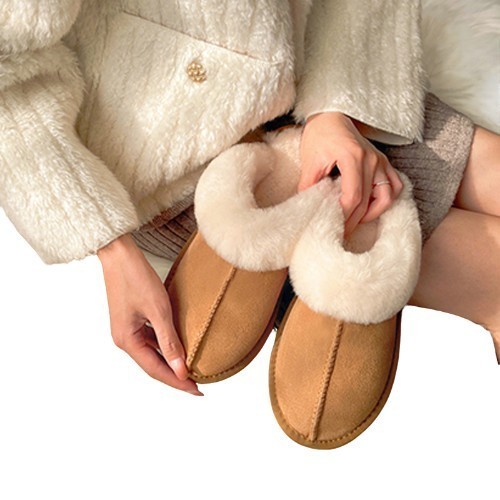 高密度で良質の原皮が集められるオーストラリア・ヴィクトリア州で、生後45カ月未満の一度も毛を刈り取っていない羊の原皮のみを使用。甲部分から中敷きまで、すべて本物のムートンで仕立てられています。あたたかい空気をしっかり閉じ込め、足もとポカポカ。吸湿性と放湿性にすぐれ、サラッと快適です。カラーはチェスナット、サイズは24.0p。