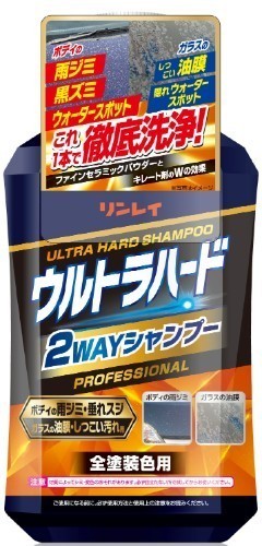 希釈して普段の洗車にも、原液のままで頑固な汚れ落としにも使える2WAYタイプの車用シャンプーです。ファインセラミックパウダーとキレート剤のダブルの効果で、水アカ・雨ジミ・垂れスジ・虫汚れ・融雪剤・ブレーキダストの汚れをズバッと落とします。古いワックスやコーティング、ガラスのしつこい油膜、隠れウォータースポットも徹底除去します。