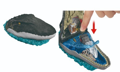 モササウルスの頭を開くと、恐竜のフィールドが広がるデラックスセットが登場! フィールド内にはさまざまな地形や仕掛けがあり、恐竜を配置して映画のシーンを再現できます。恐竜が飛び出すギミックや、ほえるサウンド機能付きで、動きや音とともに臨場感あふれるプレイが可能。6種類のマイクロフィギュアが付属しており、コレクションとしても楽しめます。対象年齢4歳以上。