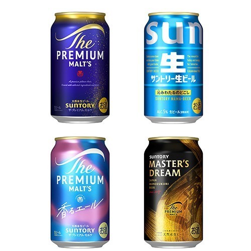 「サントリー生ビール」&「ザ・プレミアム・モルツ」ブランド3種サントリー生ビール(350ml、オープン価格)ザ・プレミアム・モルツ(350ml、オープン価格)ザ・プレミアム・モルツ 〈ジャパニーズエール〉 香るエール(350ml、オープン価格)ザ・プ レミアム・モ ルツ マスターズドリーム(350ml、希望小売価格291円・税込)