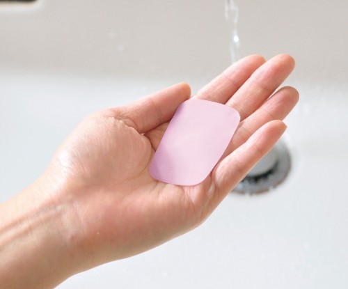 洗面台に石けんがない時や、共用の石けんを使うのに抵抗がある方にオススメの紙石けんです。1枚を手のひらに乗せて水を垂らすと、泡が立ってキレイに洗えます。場所を取らないので、ポーチに入れて持ち運べます。