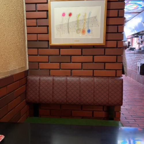 レンガづくりでコンパクトなソファー席
