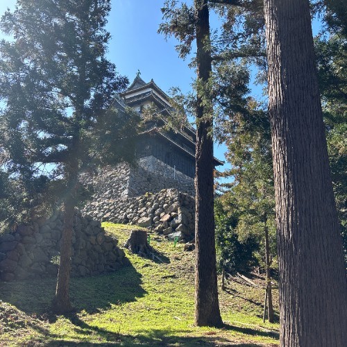 立派なお城に石垣がそびえて