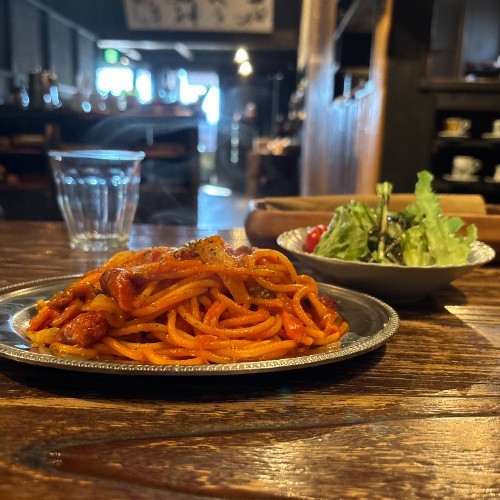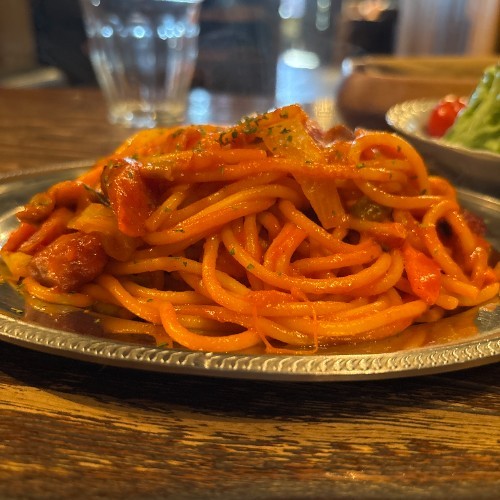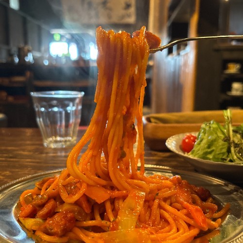 茹で置き太麺スパゲッティの跳ねる系ナポリタン