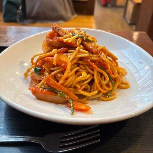 八重山そばストレート麺の跳ねる系ナポリタン