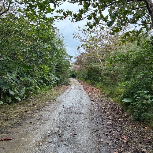 島の中心に向けて坂道を登って上がりきると