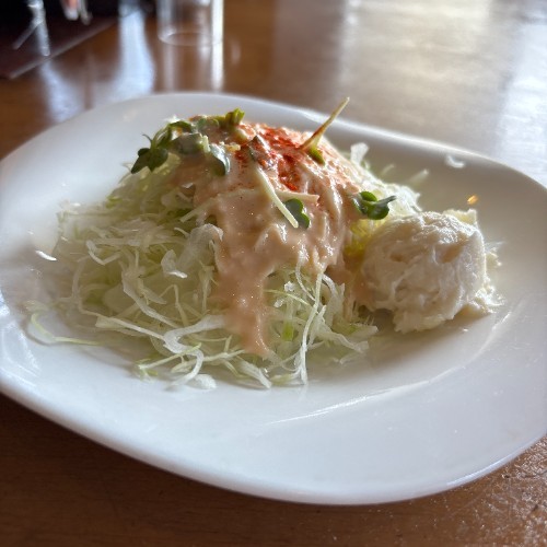 サラダ付きでシルバーのお皿