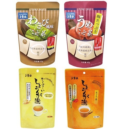 玉露園の「こんぶ茶」の旨みに「わさび風味」を加えた逸品「わさび風味こんぶ茶」と、「梅たっぷりうめこんぶ茶」「から〜いしょうが湯(粉末)」「しょうが湯(粉末)」の4種をセットにして24名様にプレゼントします。