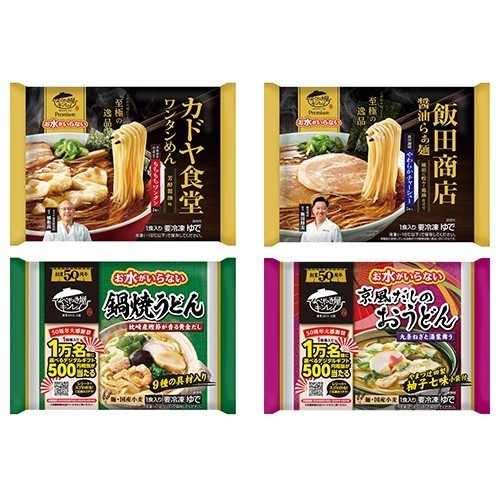 創業50周年のキンレイ冷凍具付きうどん・ラーメン「お水がいらない」シリーズから、“こだわり尽くした至極の逸品”がコンセプトのプレミアムラインが新発売。今回、プレミアム新商品と人気商品など4種セットで読者20名様にプレゼントします。