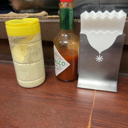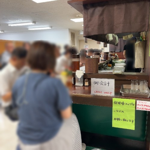 並んでるときは、壁に貼ってあるメニューで確認して、量を決めます