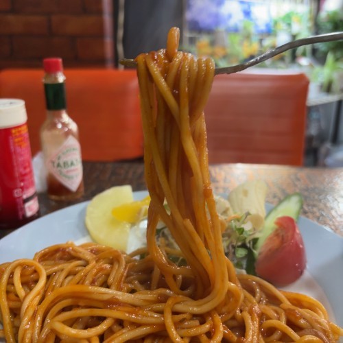 茹で置きふるふるスパゲッティの跳ねる系ナポリタン